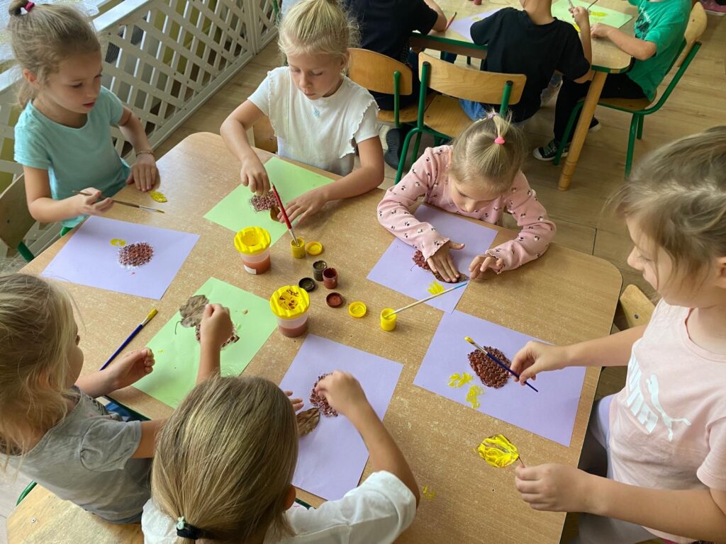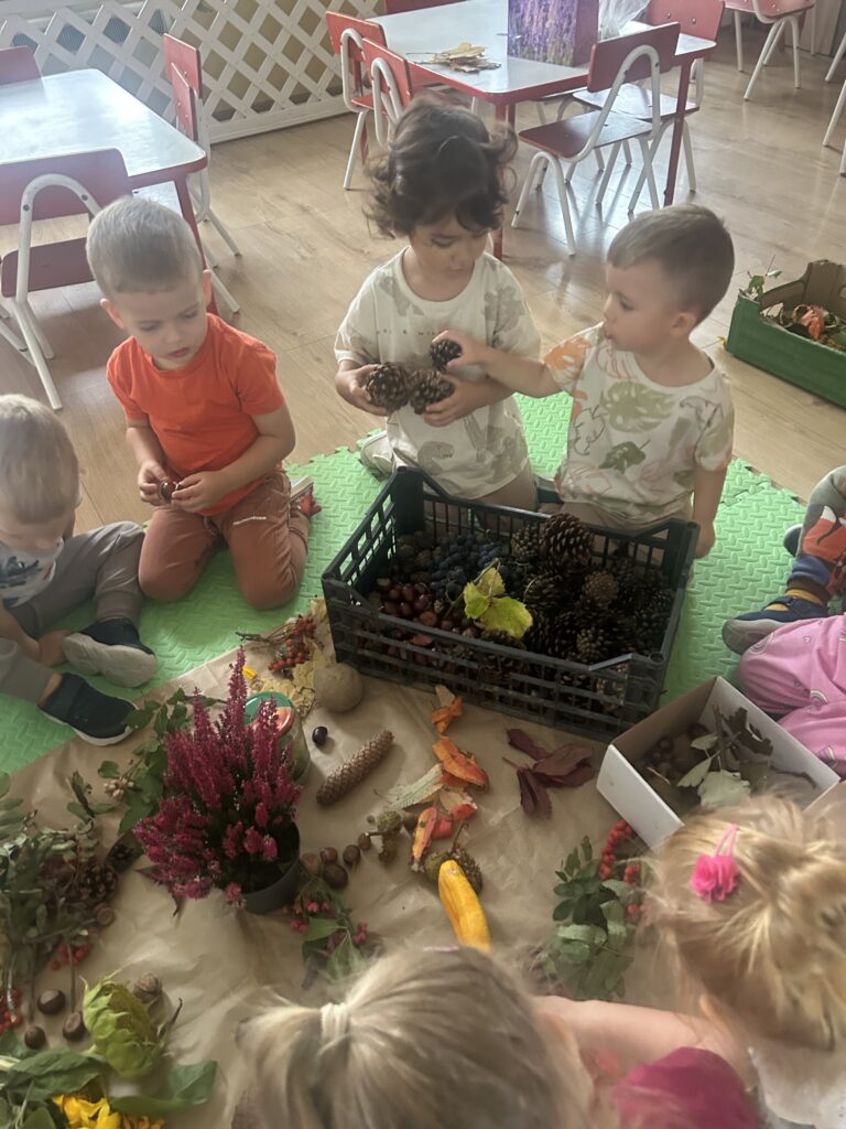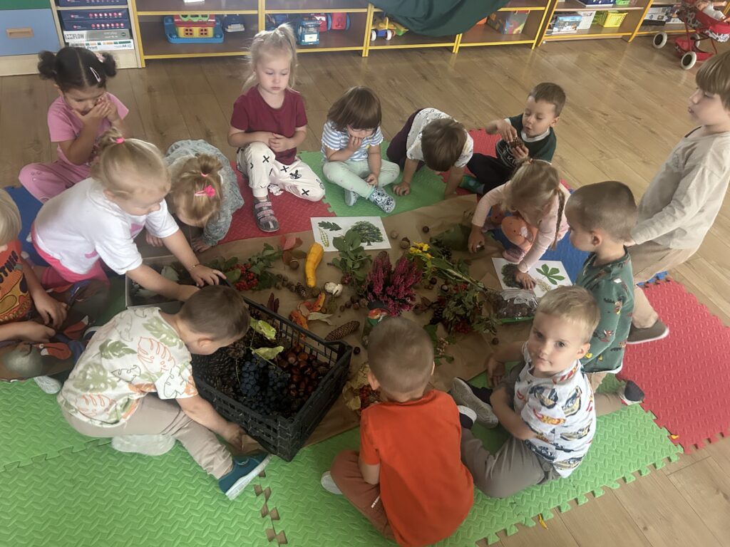 We wtorek 23 września pożegnaliśmy lato i uroczyście powitaliśmy najbardziej kolorową porę roku- JESIEŃ. Ten dzień obfitował w rozmaite gry i zabawy o tematyce jesiennej, które przyniosły dzieciom wiele radości. Nie zabrakło piosenek, tańców oraz zabaw matematycznych. Przyniesione przez dzieci barwne dary jesieni przyozdobiły nasze sale tworząc wyjątkowe kąciki przyrodnicze. Dziękujemy Rodzicom za pomoc w stworzeniu jesiennego klimatu.