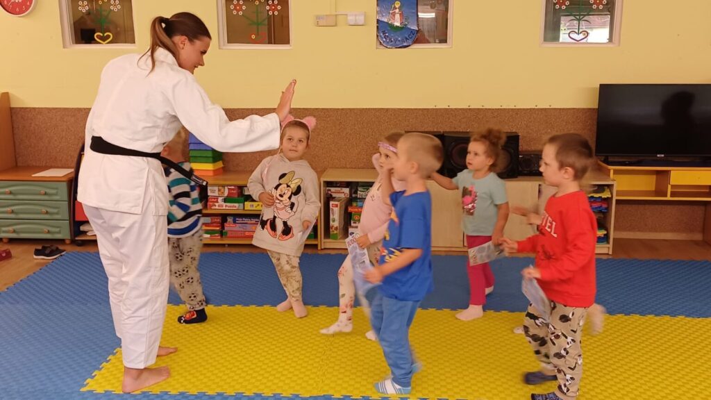 Zajęcia Judo w naszym przedszkolu to przede wszystkim dobra zabawa i uśmiech dziecka. Ćwiczenia proponowane najmłodszym uczą współpracy i odwagi. Dzięki treningom organizowanym w formie zabaw ruchowych i prostych ćwiczeń dzieci odkrywają, że bycie silnym oznacza szacunek wobec innych oraz panowanie nad sobą.