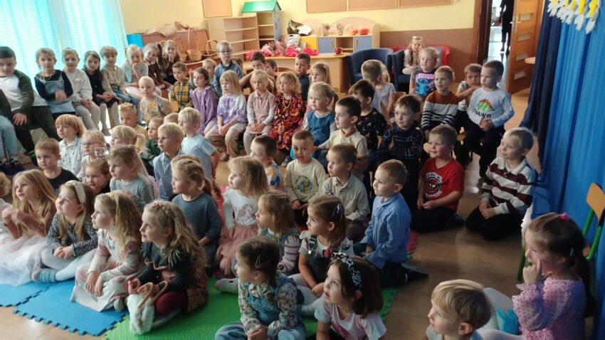 Dziś w naszym przedszkolu zagościł teatrzyk. Przedszkolaki przywitały aktorów głośnymi brawami. Z uwagą i uśmiechem obserwowały krasnala martwiącego się nadchodzącą zimą oraz babcię Danusię, którą zrobiła mu na drutach sweterek. Bajka była pełna humoru, dużo uśmiechu wywołała postać kota psotnika, zajączka i myszy. Dzieci aktywnie uczestniczyły w prezentowanej sztuce dziękując aktorom mocnymi brawami na zakończenie teatrzyku.