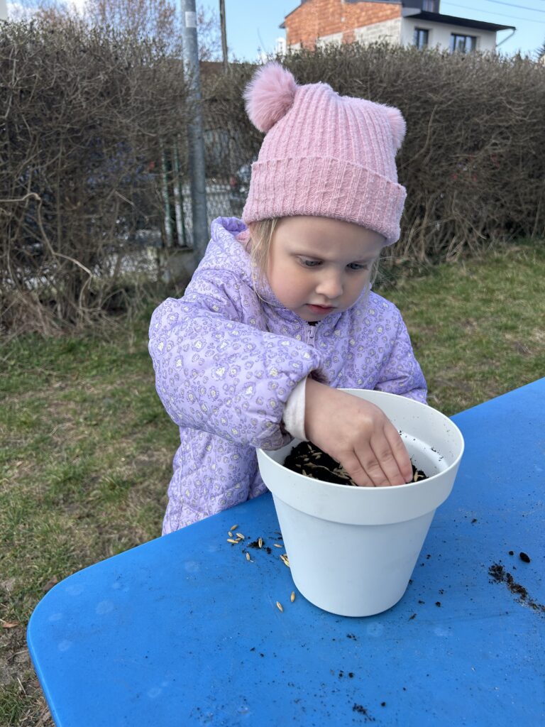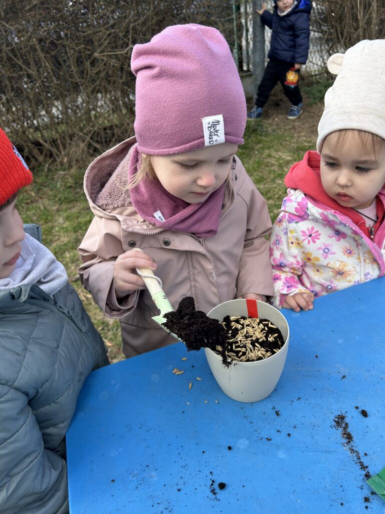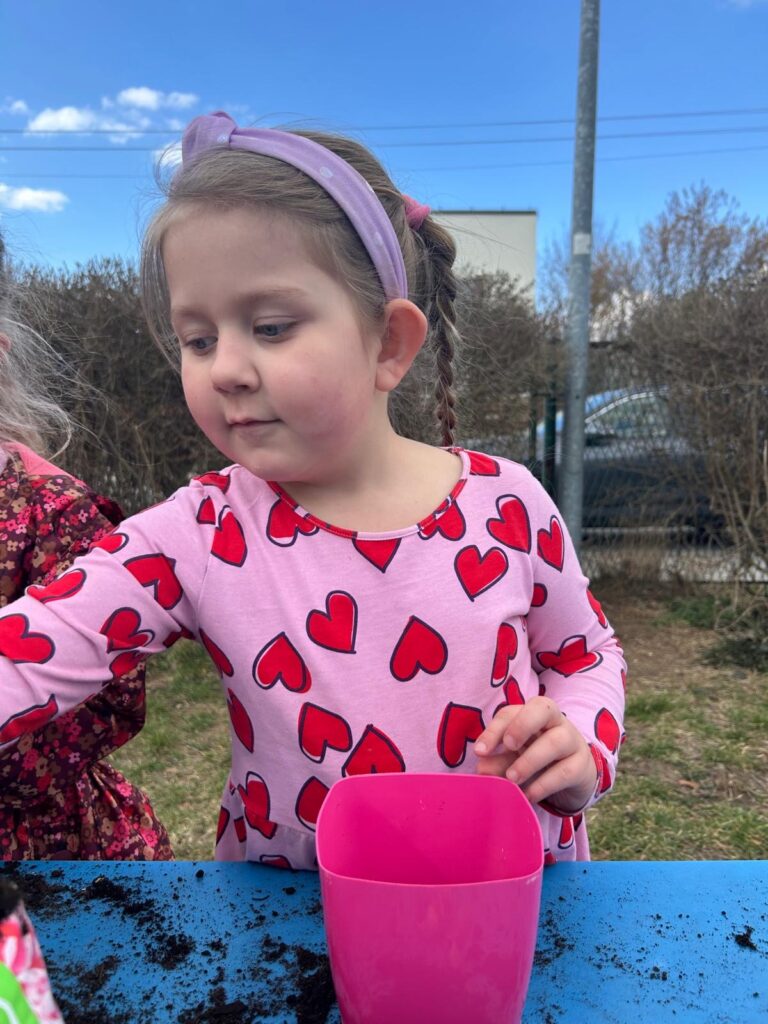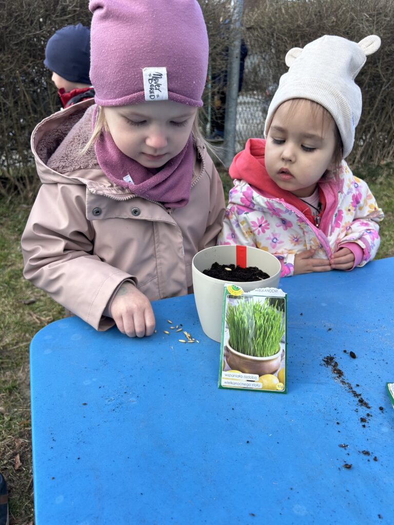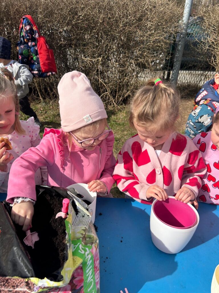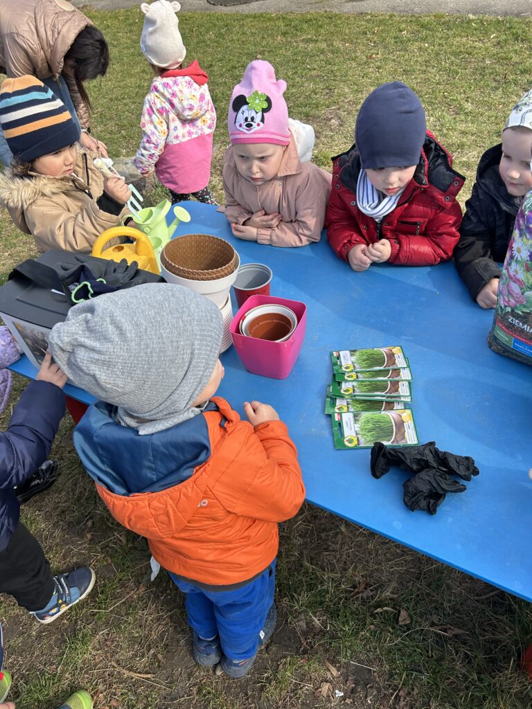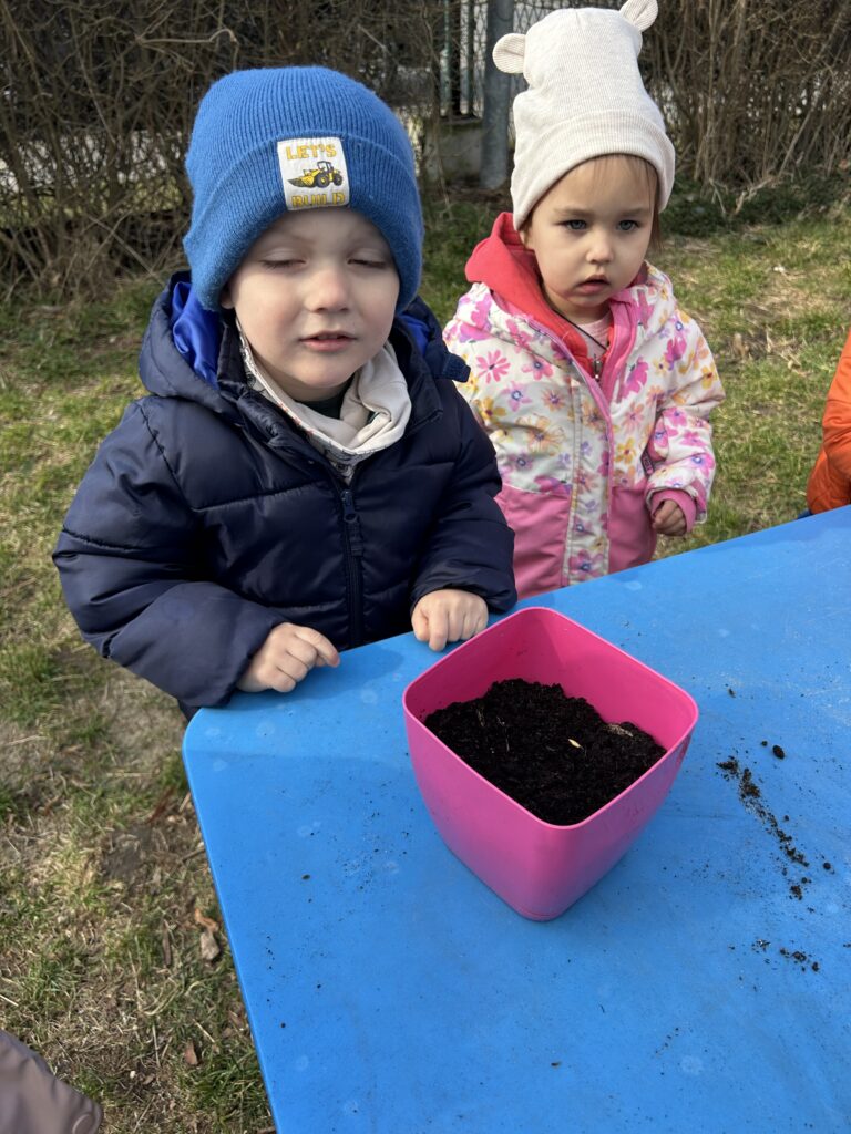 Marzec to świetna okazja do zapoznania najmłodszych z tajnikami sadzenia roślin. W oczekiwaniu na nadejście wiosny nasze przedszkolaki zamieniły się w małych ogrodników w przedszkolnym ogrodzie. Dowiedziały się jak prawidłowo sadzić cebulki oraz nasiona, czego rośliny potrzebują do wzrostu oraz jak o nie dbać. Przez najbliższe dni będziemy wspólnie obserwować jak kiełkują zasadzone rośliny ucząc się przy tym odpowiedzialności oraz cierpliwości.