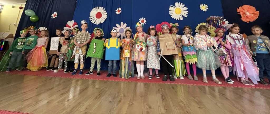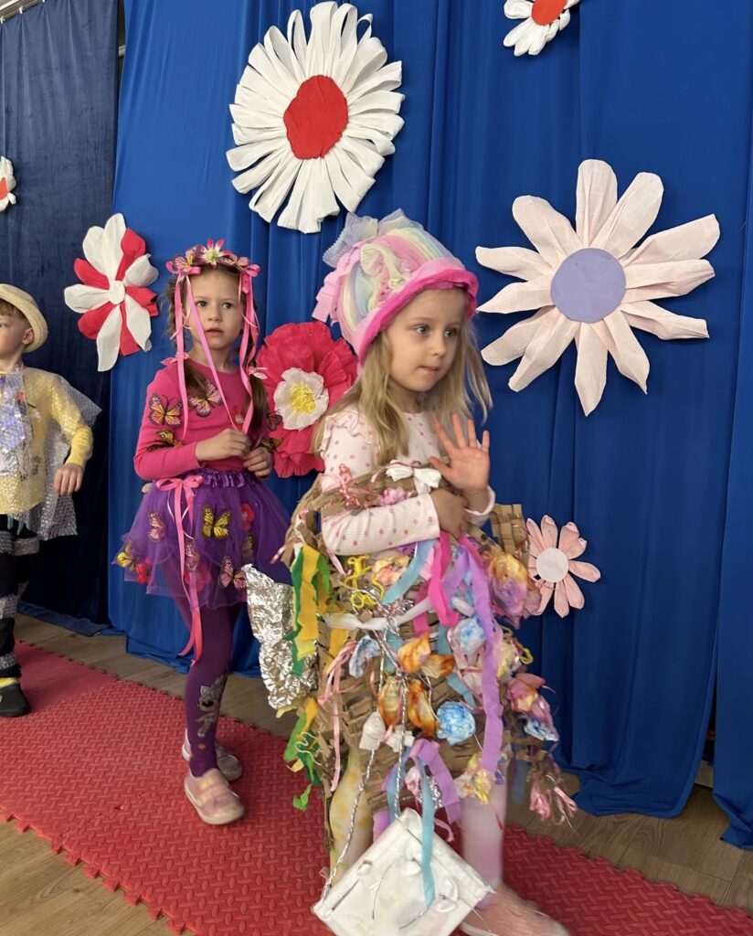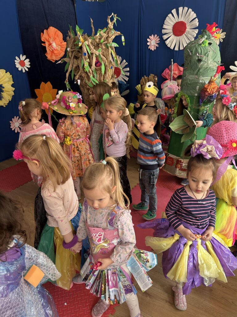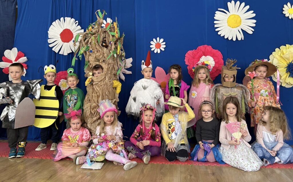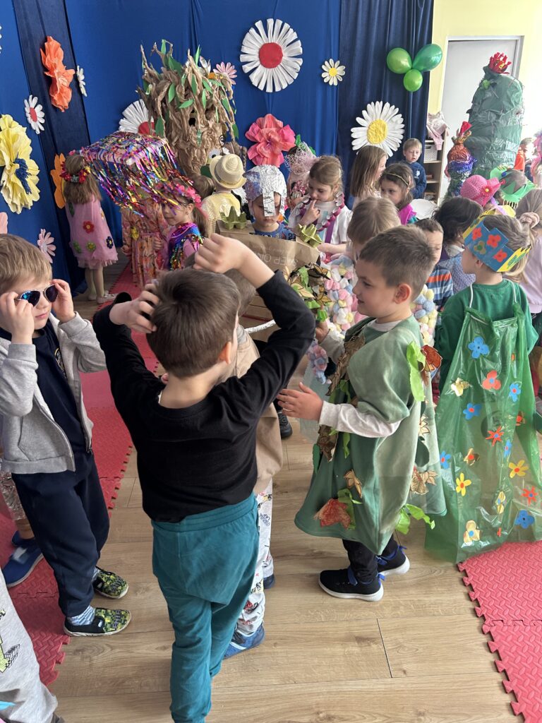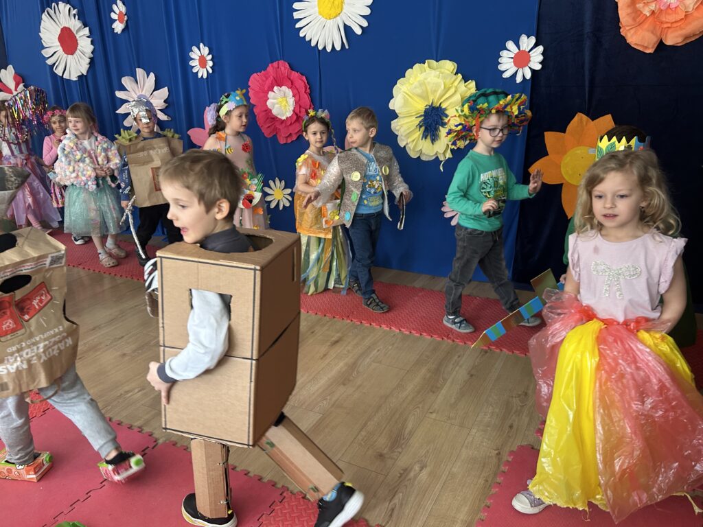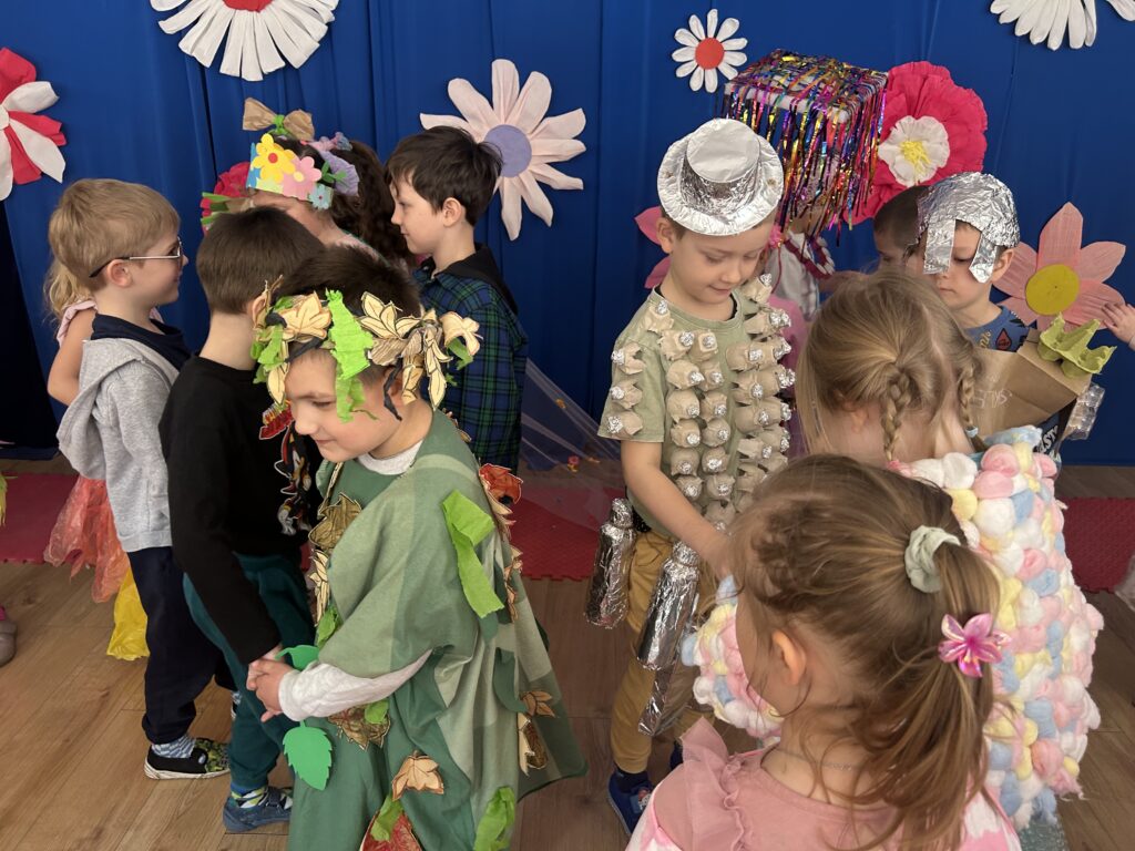Powitanie Pani Wiosny to radosne święto w naszym przedszkolu, które obejmuje wspólne śpiewanie piosenek, tańce oraz liczne wiosenne zabawy. W tym roku każde dziecko przyszło ubrane w specjalnie zaprojektowanych wraz z rodzicami strojach symbolizujących nową porę roku. Kolorowe i bardzo pomysłowe stroje wykonane zostały z różnorodnych materiałów przeznaczonych do recyklingu. Wydarzenie było świetną okazją do rozmowy o ochronie środowiska oraz w jaki sposób można wykorzystać surowce wtórne. Rewia mody pokazała jak z odrobiną wyobraźni można stworzyć coś pięknego. Dziękujemy wszystkim rodzicom za pomoc w zorganizowaniu dzisiejszej zabawy.
