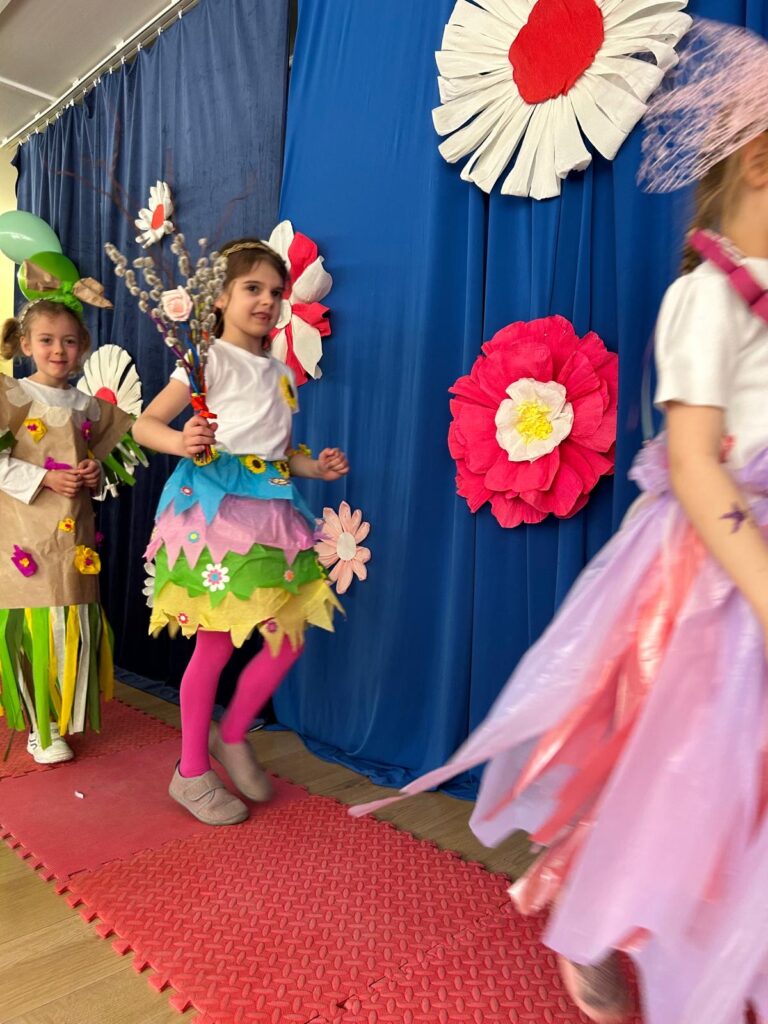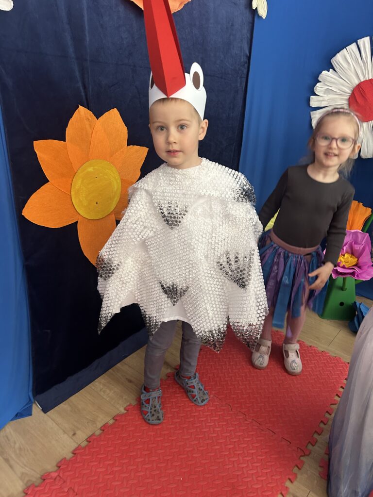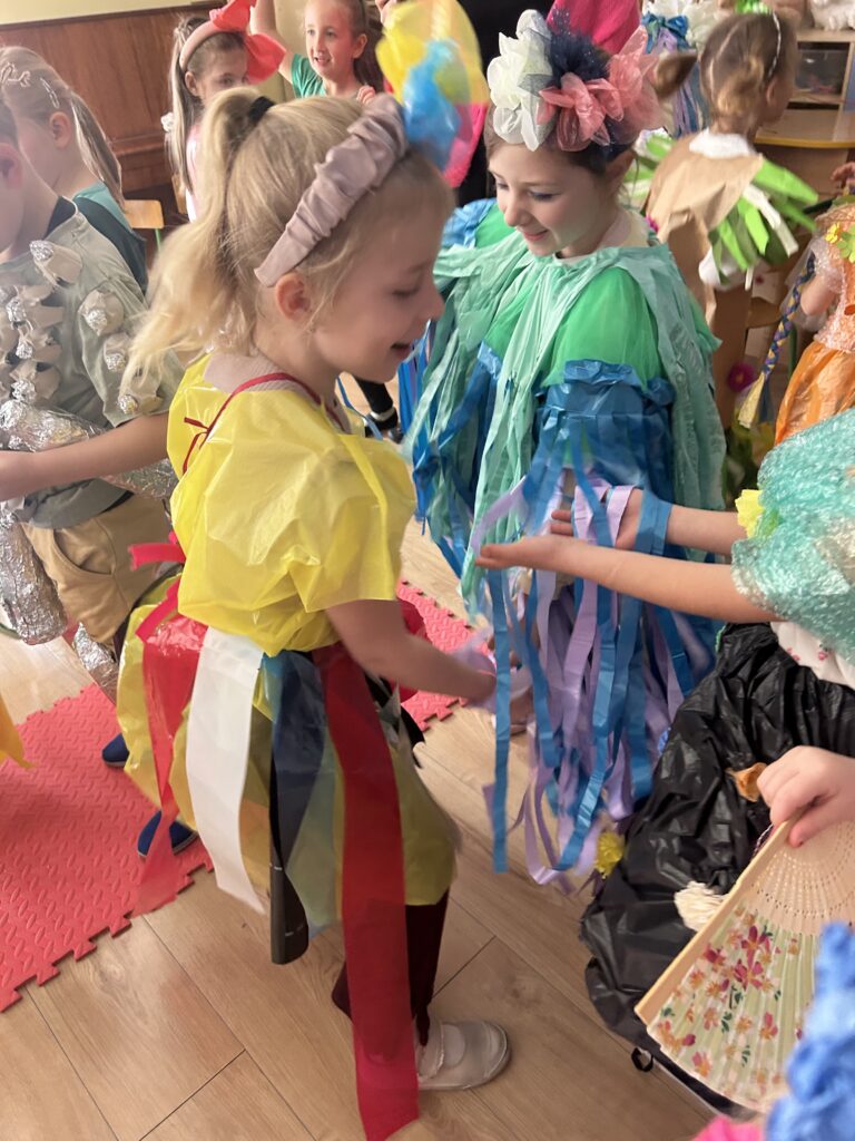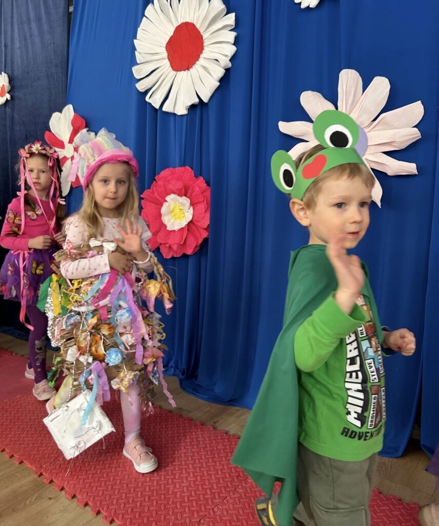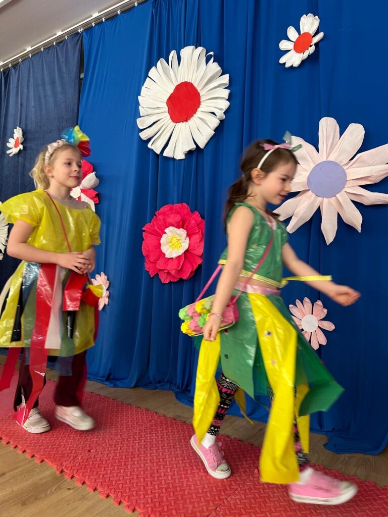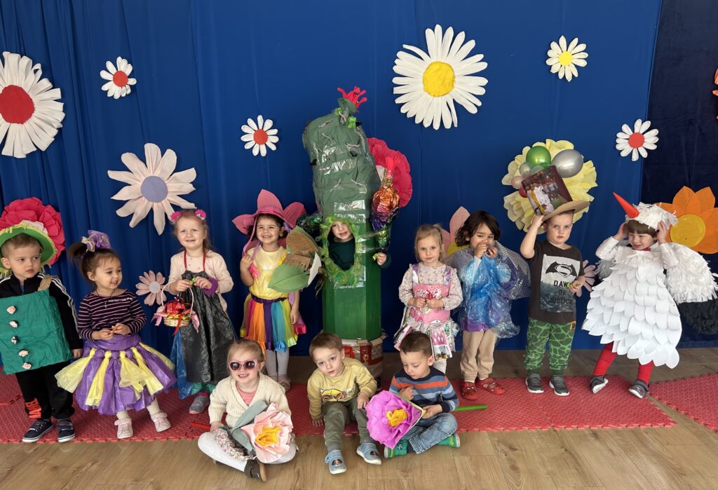 Powitanie Pani Wiosny to radosne święto w naszym przedszkolu, które obejmuje wspólne śpiewanie piosenek, tańce oraz liczne wiosenne zabawy. W tym roku każde dziecko przyszło ubrane w specjalnie zaprojektowanych wraz z rodzicami strojach symbolizujących nową porę roku. Kolorowe i bardzo pomysłowe stroje wykonane zostały z różnorodnych materiałów przeznaczonych do recyklingu. Wydarzenie było świetną okazją do rozmowy o ochronie środowiska oraz w jaki sposób można wykorzystać surowce wtórne. Rewia mody pokazała jak z odrobiną wyobraźni można stworzyć coś pięknego. Dziękujemy wszystkim rodzicom za pomoc w zorganizowaniu dzisiejszej zabawy.