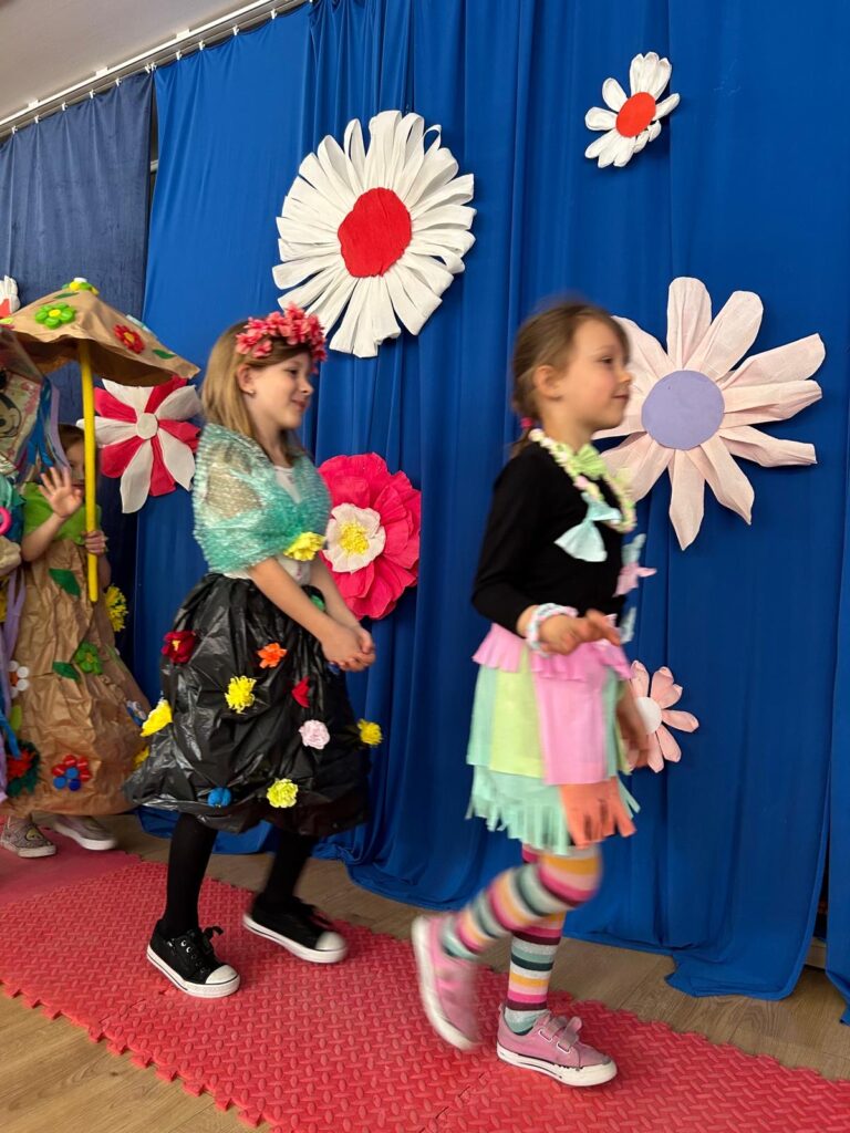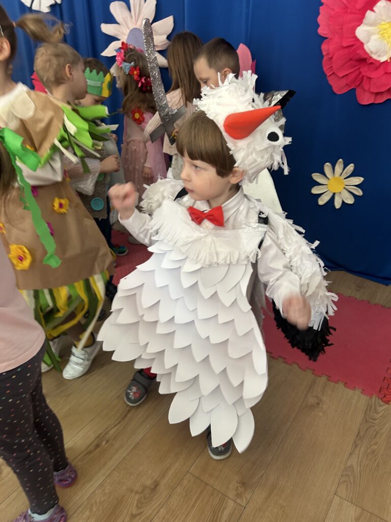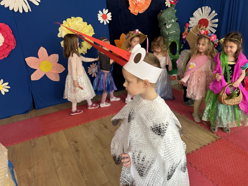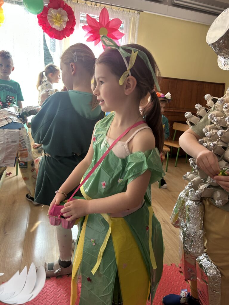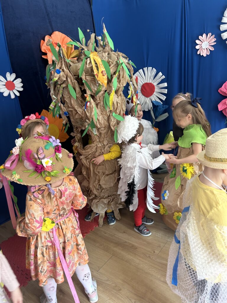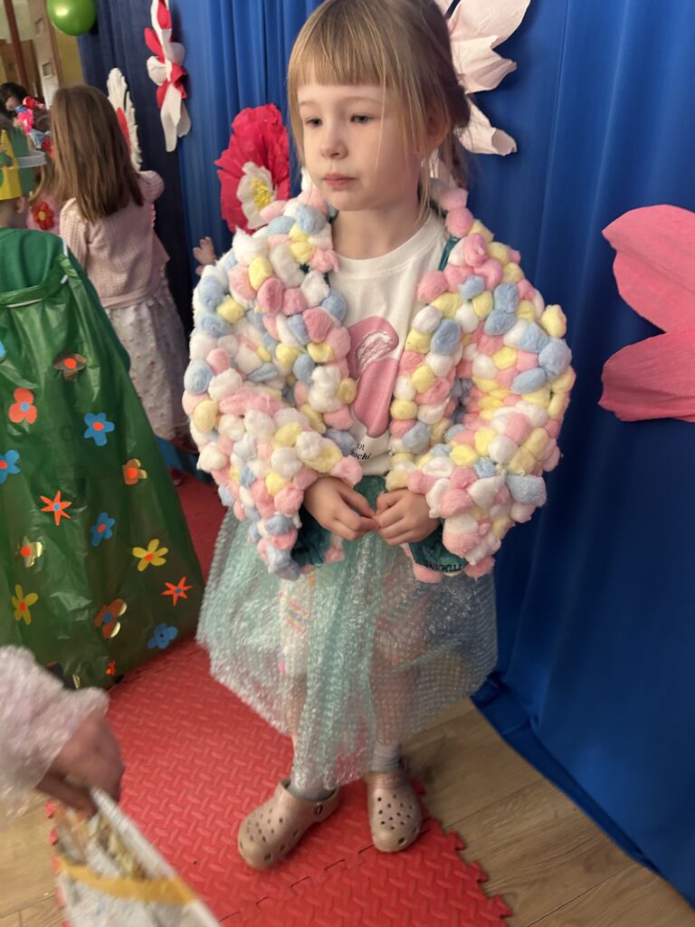 Powitanie Pani Wiosny to radosne święto w naszym przedszkolu, które obejmuje wspólne śpiewanie piosenek, tańce oraz liczne wiosenne zabawy. W tym roku każde dziecko przyszło ubrane w specjalnie zaprojektowanych wraz z rodzicami strojach symbolizujących nową porę roku. Kolorowe i bardzo pomysłowe stroje wykonane zostały z różnorodnych materiałów przeznaczonych do recyklingu. Wydarzenie było świetną okazją do rozmowy o ochronie środowiska oraz w jaki sposób można wykorzystać surowce wtórne. Rewia mody pokazała jak z odrobiną wyobraźni można stworzyć coś pięknego. Dziękujemy wszystkim rodzicom za pomoc w zorganizowaniu dzisiejszej zabawy.