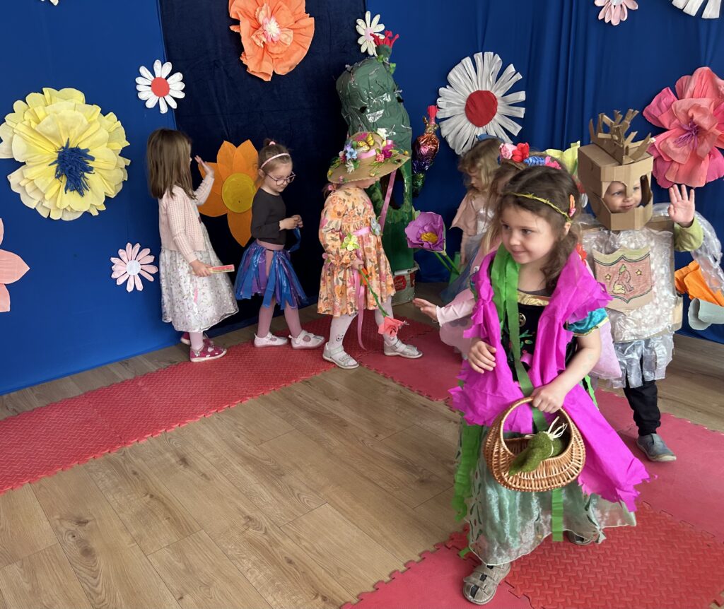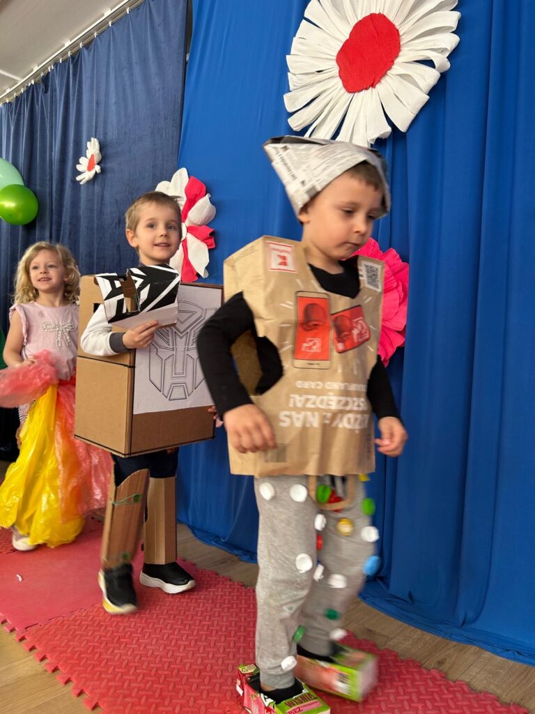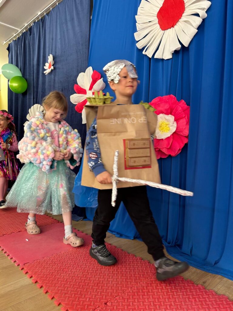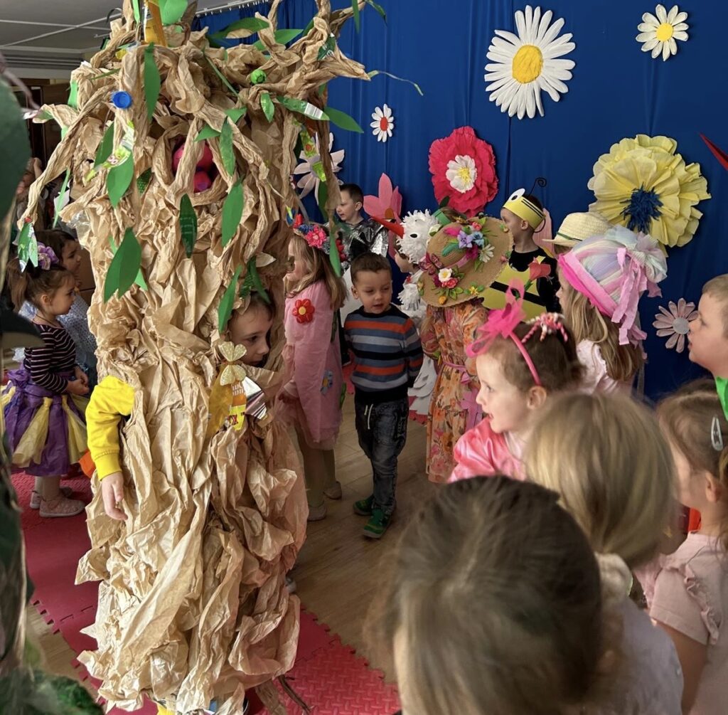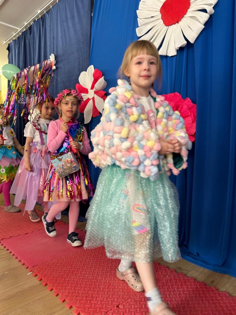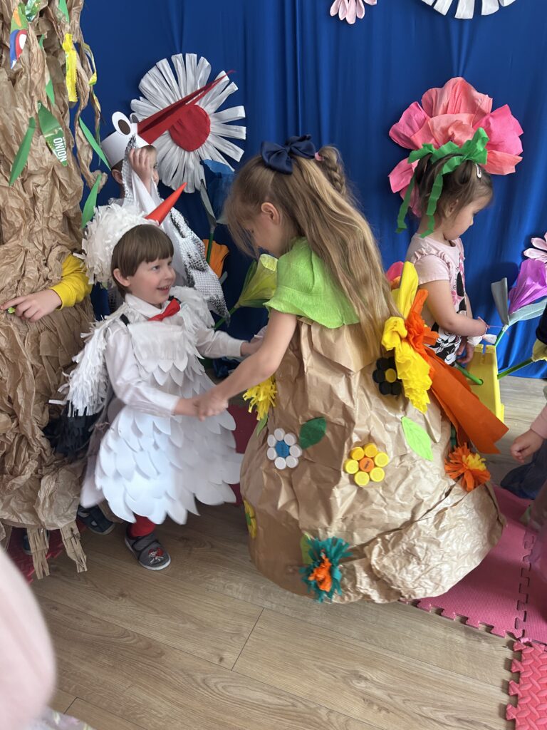 Powitanie Pani Wiosny to radosne święto w naszym przedszkolu, które obejmuje wspólne śpiewanie piosenek, tańce oraz liczne wiosenne zabawy. W tym roku każde dziecko przyszło ubrane w specjalnie zaprojektowanych wraz z rodzicami strojach symbolizujących nową porę roku. Kolorowe i bardzo pomysłowe stroje wykonane zostały z różnorodnych materiałów przeznaczonych do recyklingu. Wydarzenie było świetną okazją do rozmowy o ochronie środowiska oraz w jaki sposób można wykorzystać surowce wtórne. Rewia mody pokazała jak z odrobiną wyobraźni można stworzyć coś pięknego. Dziękujemy wszystkim rodzicom za pomoc w zorganizowaniu dzisiejszej zabawy.